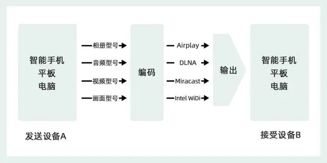 投屏是一種實現(xiàn)小屏畫面顯示在大屏設備上的技術,無線投屏器就是用以輔助投屏的專業(yè)設備,將原本不支持投屏的設備變成可以投屏的設備。本文就以一張圖和簡單說明為您介紹無線投屏器工作原理。